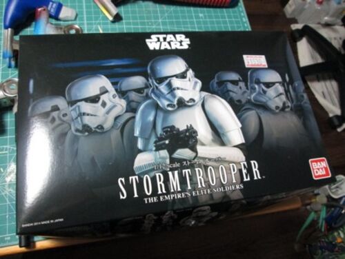 ●わかりにくい表記になってますが、バンダイのプラモのストームトルーパーです。 今さらになりましたが買いました。 塗装もなしで組んだだけです。やっぱり装甲の分で可動範囲は若干せまい。 1/12スケールならfigmaと同じ筈なんですが、けっこう身長が高くて…